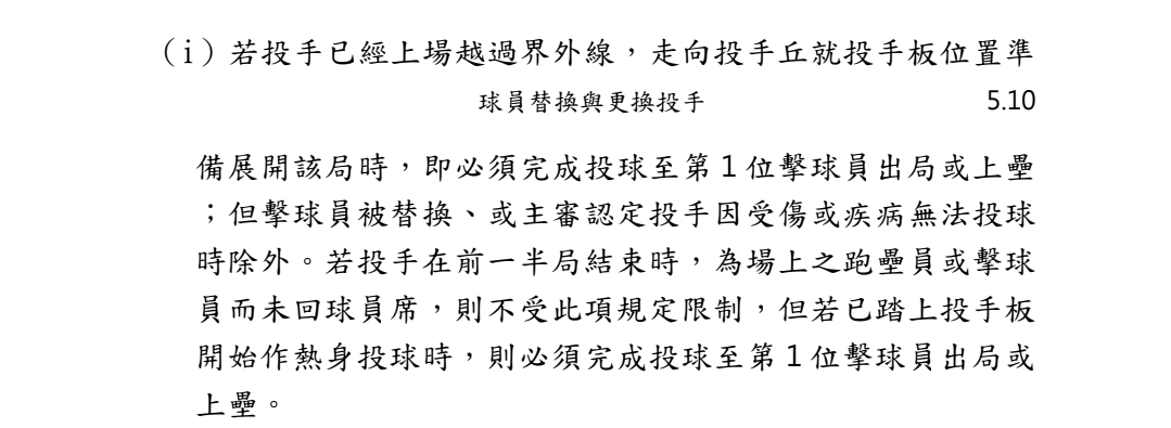 推 abc12812: 3看起來是指開局前投手上丘熱身就不能馬上換下去 12/22 04:32