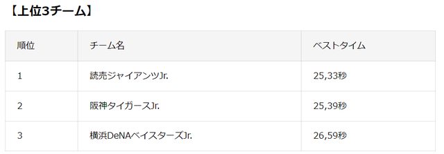 由讀賣巨人Jr.以25.33秒得獎