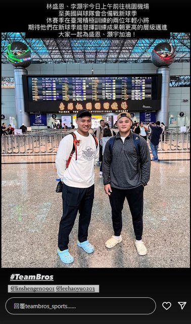 標題[分享] 林盛恩、李灝宇 今天搭機赴美備戰新球季