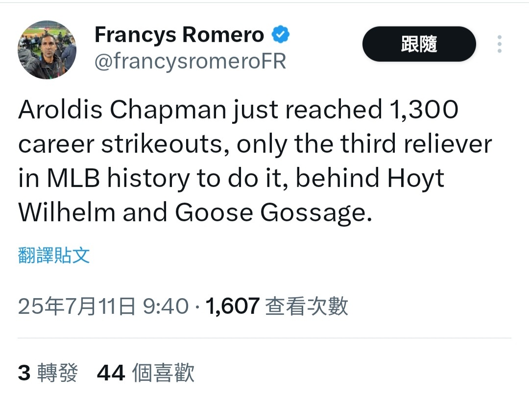 推 amud85201: Chapman的war好像反超金寶跟簡森了 金寶沒啥出賽機會 07/11 10:50
