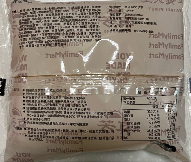 在全家麵包區看到花生厚片覺得很有趣