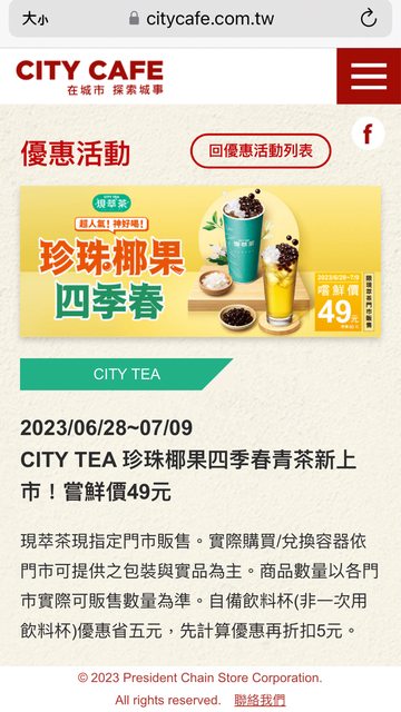 【商品名稱/價格】:珍珠椰果四季春/原價60,現優惠49