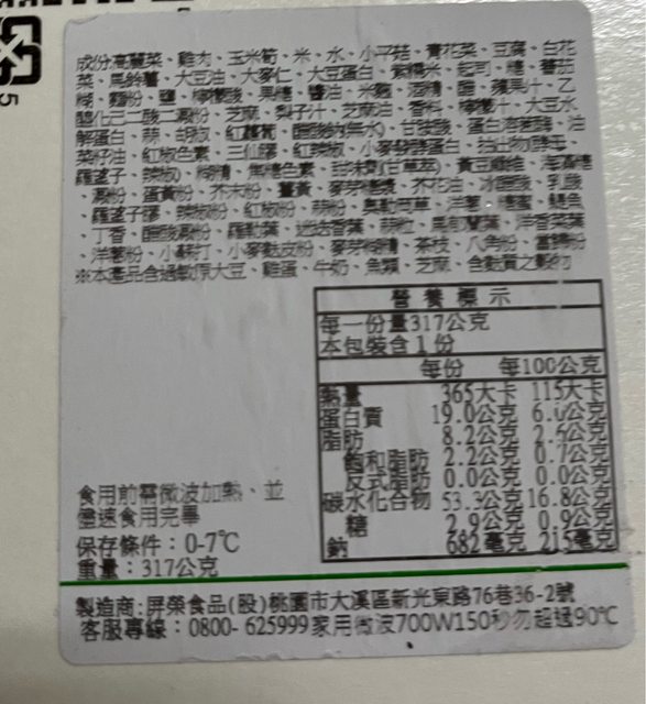 【規格/內容物/熱量】: