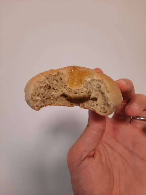 兩顆小麵包,缺點是用手拿會黏黏的