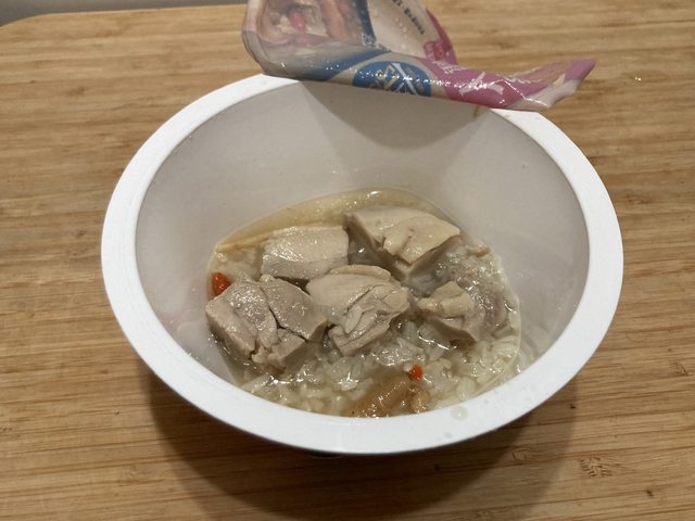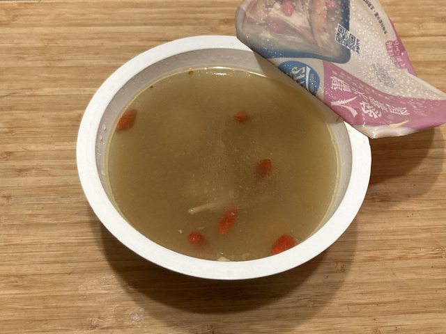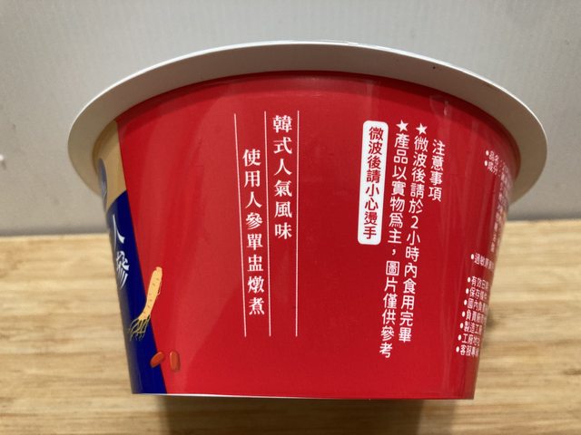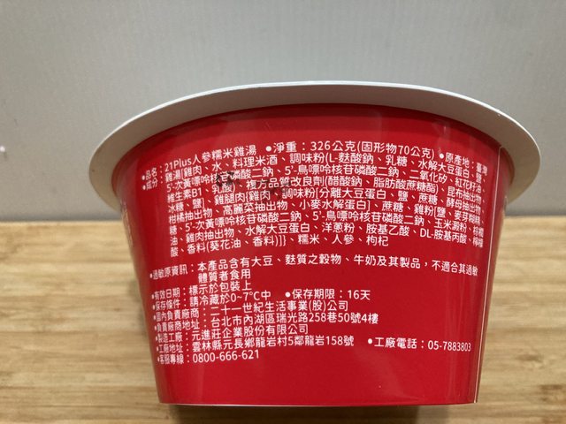 人蔘糯米雞湯:326公克(固形物70公克)/雞肉、糯米、人參、枸杞、水/149大卡