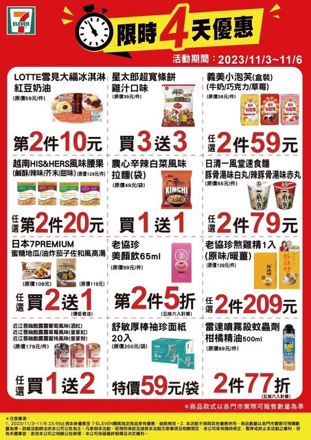 標題: [情報] 7-11 限時優惠 11/3~11/6