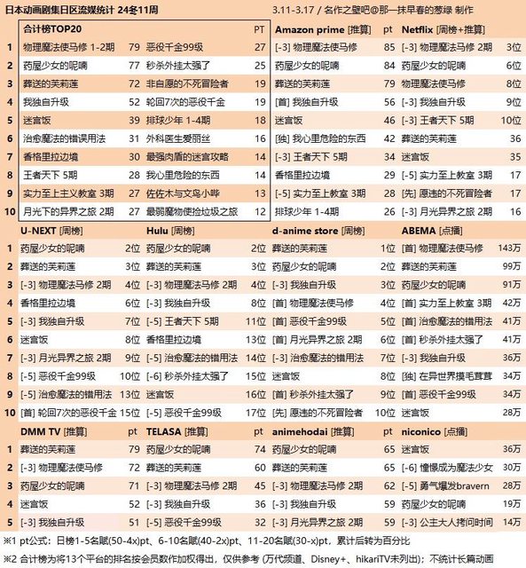 標題[閒聊] 上周日本串流動畫觀看排行榜(3/11~3/17)
