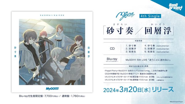 收錄於 4th Single「砂寸奏/回層浮」,3/20 已發售