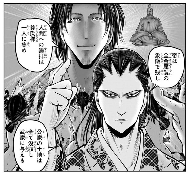 所以高師直想要改革,以後只要崇拜尊氏就好,公家的土地也要全部沒收給武家