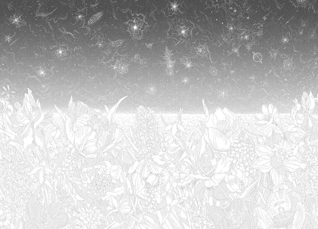 同時若仔細觀察那張極樂淨土,會發現許多花朵的花蕊,都是酷似礦石結晶的幾何形