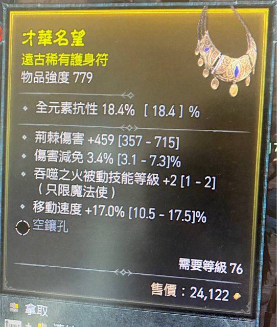 標題[競標] 法師項鍊 吞噬+2 近頂跑速 傷害減免