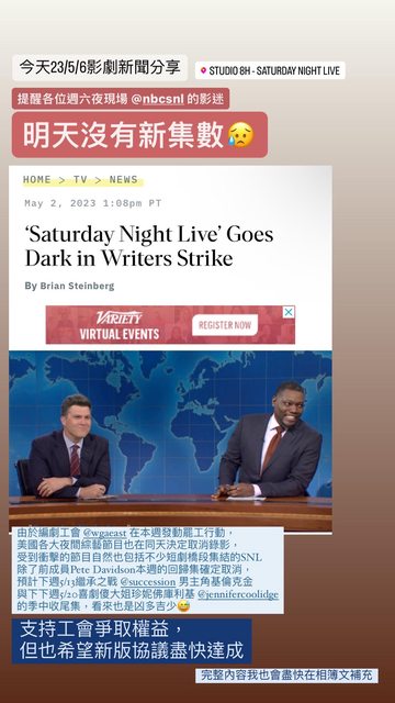 ■這次罷工風暴連帶讓綜藝節目停產,許多喜劇迷當然會感到無奈,不過幾件與SNL的