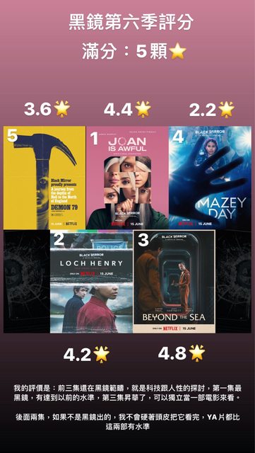 → NANJO1569: 我的排名跟你一樣3>1>2>5>4 後面3集基本上跟黑鏡沒關了 07/08 13:44