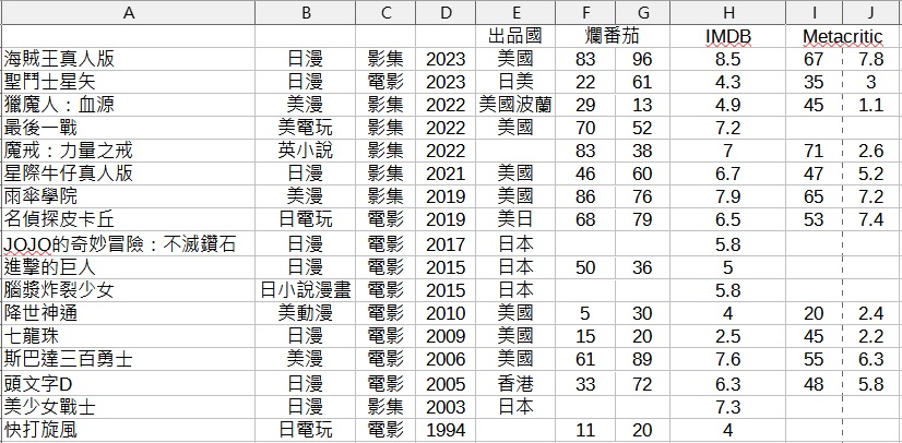 推 godshibainu: 隨便整理了一些真人化的評分 海賊算棒棒的了 09/04 21:10