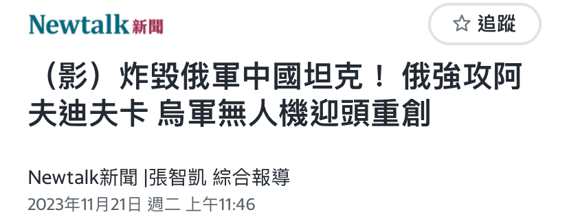 → jma306: 北約戰場科技壓制 俄軍克服很多 114.26.90.61 11/23 00:23