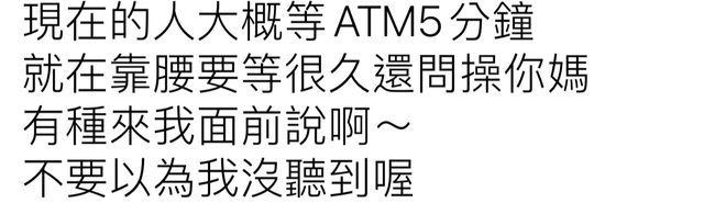 → Misscat16868: 轉帳,你是不是不知道ATM有這個功 223.137.70.177 11/23 09:36