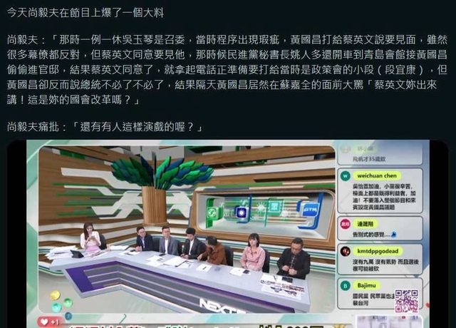前幾週政論節目的休息時間尚毅夫講了個秘密,