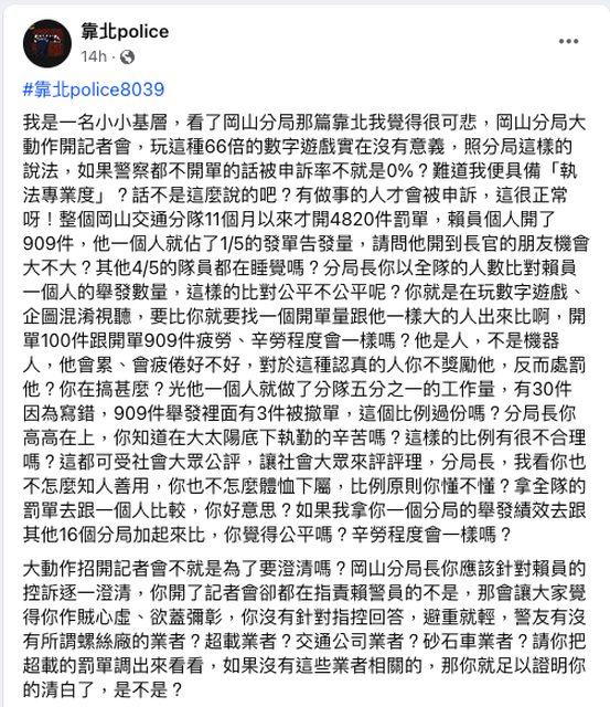 我是一名小小基層,看了岡山分局那篇靠北我覺得很可悲,岡山分局大動作開記者會,玩