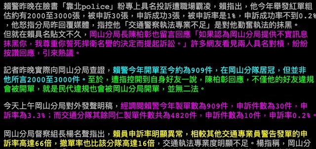 整個岡山交通分隊11個月以來才開4820件罰單,賴員個人開了909件,