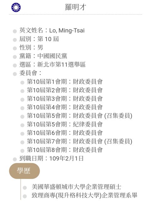 不像一些KMT立委學者出身,例如費鴻泰。