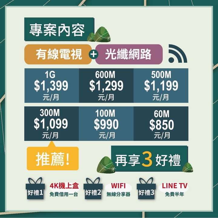 推 allennike: 凱擘300M+wifi6+有線電視一個月499 1.200.44.73 06/15 19:02