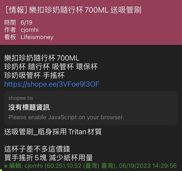 ※ 文章網址: https://www.ptt-club.com.tw/Lifeismoney/M.1687327968.A.6B9
