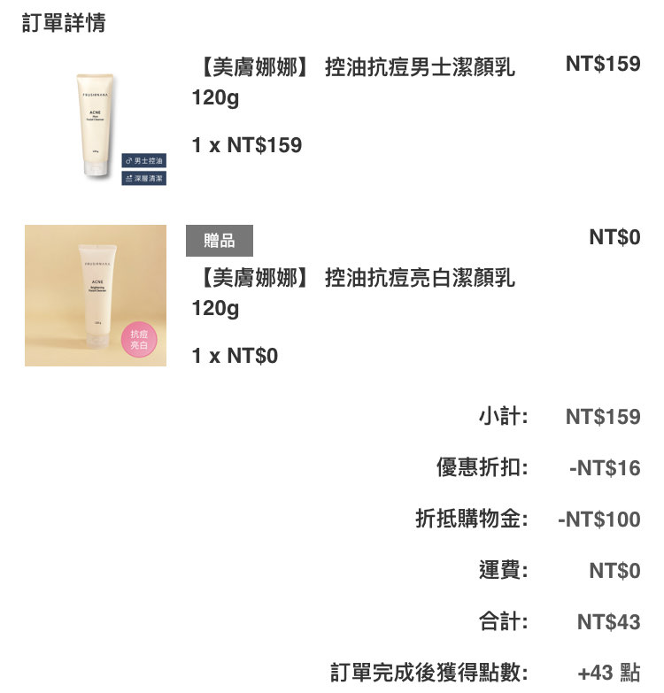 推 momo5426mo: 我是買抗痘的贈品送美白,剛好各一 27.53.224.174 06/24 15:16