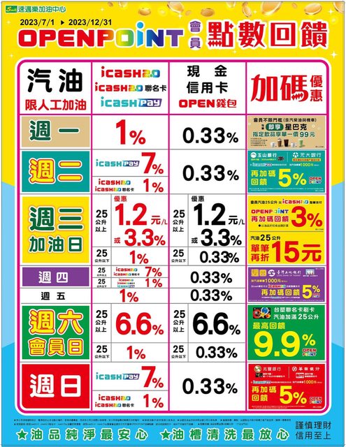 推 whatslove: 謝謝2223樓,開心卡只能週三去加油 101.137.50.142 06/26 17:59