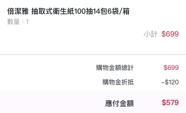 推 cgs99999: 一樣倍潔雅 150抽 80包/箱 折完699 平 153.231.86.34 06/27 08:41