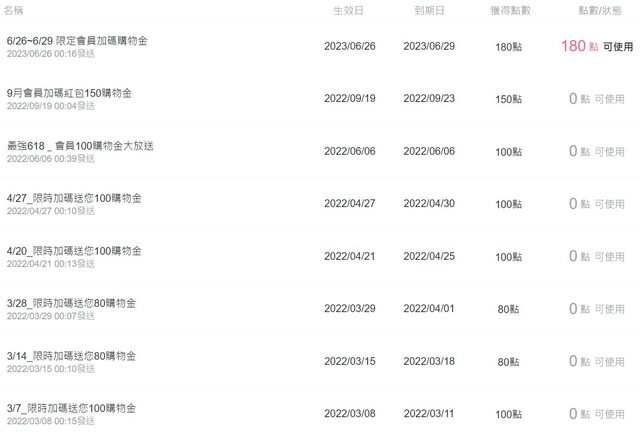 推 is1128: 剛剛也才發現原來陸續都有給我購物金 123.51.164.217 06/27 15:08