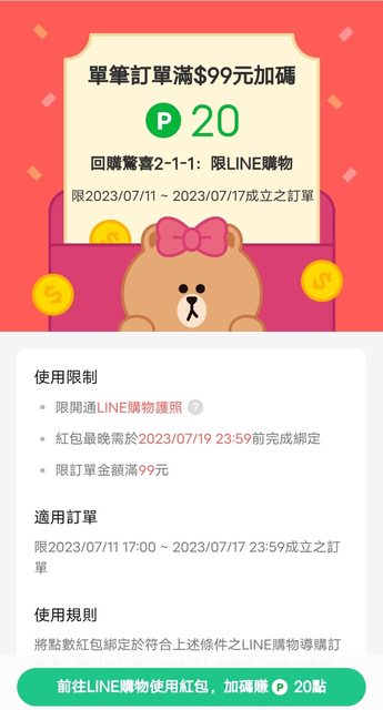 推 peter0726: LINE購物現在都只剩下優惠賣場了 118.163.96.160 07/12 11:15