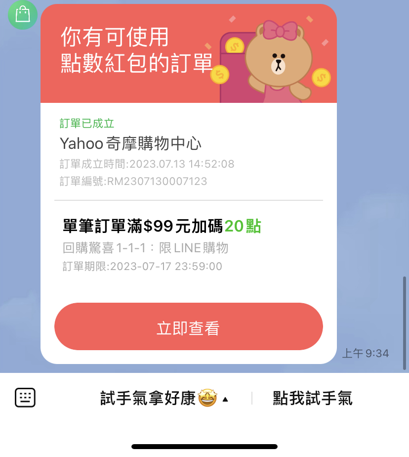→ enouch777: 已經跳出訂單。可以用這紅包喔 101.137.20.216 07/14 09:46
