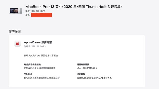 即將過保,applecare+到2023/07/15