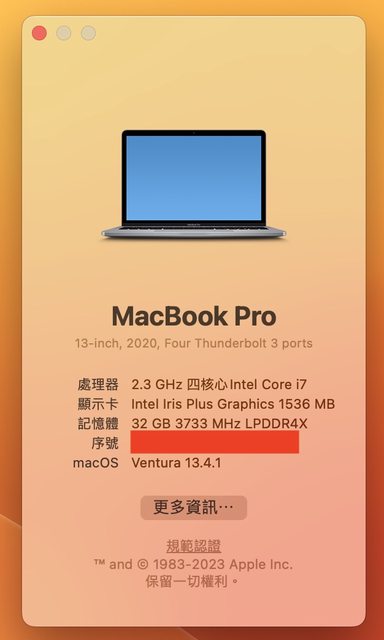 標題[販售] 台北 二手MacbookPro2020 13' i7/32G/512G