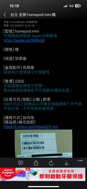 → CrystalSugar: 號不買了要退款 因有原定會議這個沒有及時回復 後 07/12 21:12