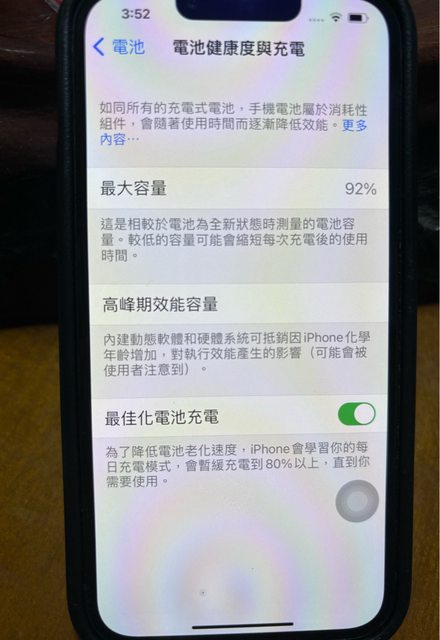 狀況很好,電池健康度還有91%,都有包膜習慣所以無傷,有些微使用痕跡但不明顯。配