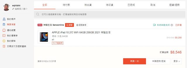 3. 購買紀錄如下畫面