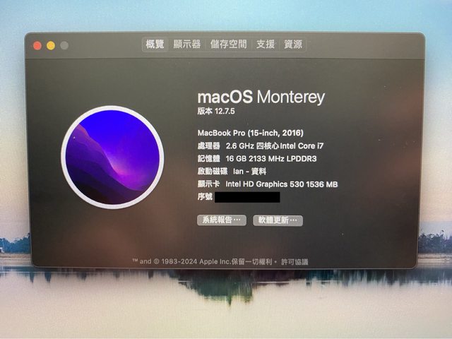 [型號] Macbook pro 15” 2016 (2017產)