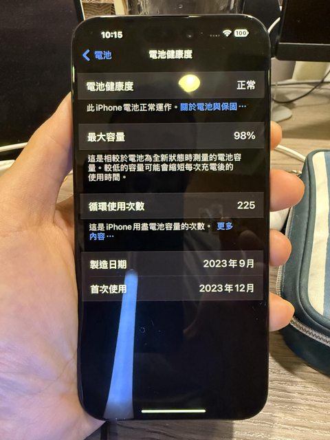 電池健康度98%,循環次數225次
