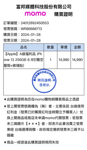 2024.01購於momo,功能正常已過保。