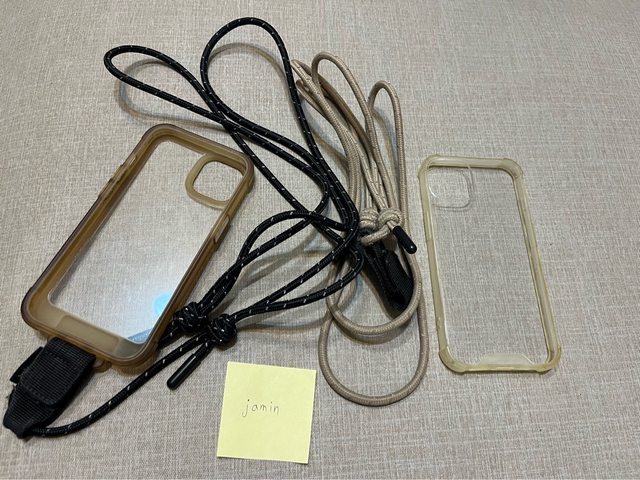 可附上未使用的透明殼一個、二手的bitplay 手機殼+兩條掛繩(米、黑各1)