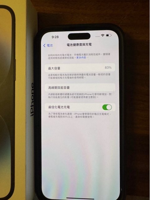 注意: 功能皆正常,電池健康度 83%。