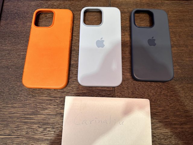 [規格]14 pro 深藍矽膠,14 pro max 亮橘皮革、淺藍矽膠