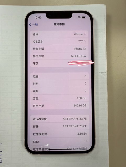 標題[販售] 陸版雙卡 iPhone 13 256G 白色