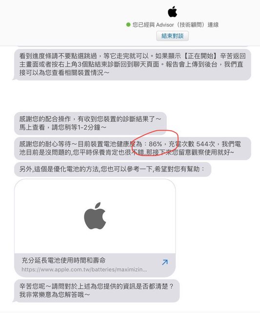 電池健康度86%