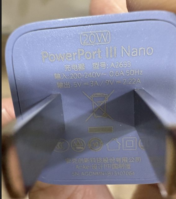附贈的Anker 20W充電器