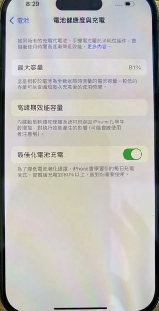 電池健康度81%,背後鏡頭邊金屬有些微刮痕,有使用痕跡。照片如下: