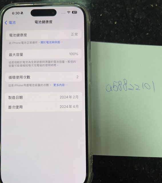 電池健康度100%,循環次數2次