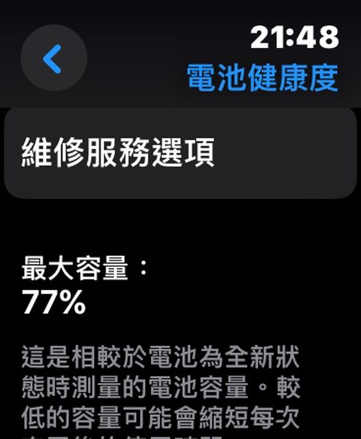 電池健康度77%