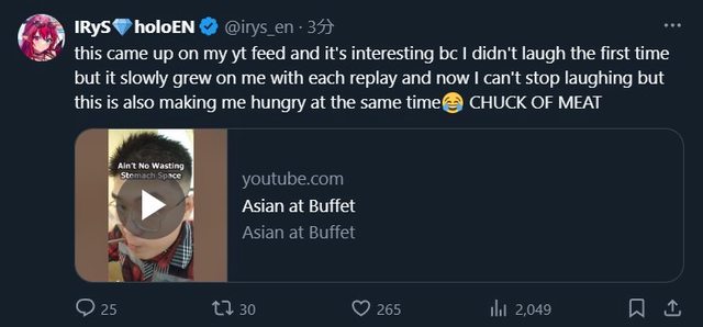IRyS毫不留情的分享牛排好吃跟yt推薦的好笑影片
